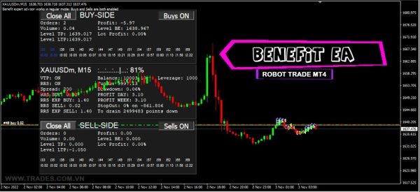 Benefit EA là một EA hoàn toàn tự động thường được bán với giá  10.000 USD . EA này hoạt động dựa trên thuật toán lưới linh hoạt không mang tính biểu thị với các điểm vào đặc biệt mang lại lợi thế thống kê được tiết lộ thông qua mô hình toán học của các mô hình thị trường.