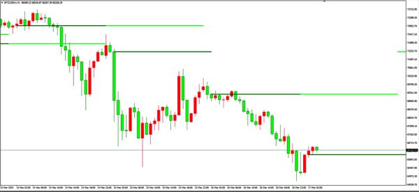 • Giá đang trong xu hướng giảm (downtrend) và tiếp cận cấp độ ngân hàng từ trên xuống.