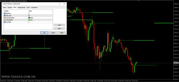 • Tùy chỉnh linh hoạt: Bạn có thể chọn hiển thị mức theo khung thời gian (hàng giờ, hàng ngày, hàng tuần), điều chỉnh màu sắc, độ dày đường hoặc chỉ hiển thị một số loại mức nhất định phù hợp với chiến lược cá nhân.