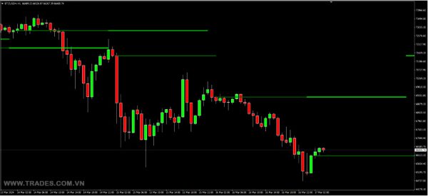 • Vẽ hỗ trợ/kháng cự trực quan: Các mức được biểu diễn bằng đường ngang màu sắc nổi bật trên biểu đồ, dễ dàng nhận biết vùng hỗ trợ (support) và kháng cự (resistance) mạnh.