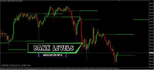 Chỉ báo Cấp Độ Ngân Hàng là công cụ phân tích kỹ thuật mạnh mẽ trên MT4, tự động vẽ các mức giá quan trọng mà các tổ chức lớn và ngân hàng thường đặt lệnh khối lượng lớn. Nó giúp trader dễ dàng nhận diện vùng hỗ trợ/kháng cự mạnh, dự đoán điểm đảo chiều hoặc breakout dựa trên hành vi smart money.